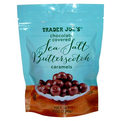 The best products with Candy Caramels. The Trader Joe's Chocolate Covered Sea Salt Butterscotch Caramels Product Description of Soft and creamy, deeply flavored butterscotch caramels are tinged with sea salt and enrobed in dark, slightly bitter chocolate to offset the sweetness.
